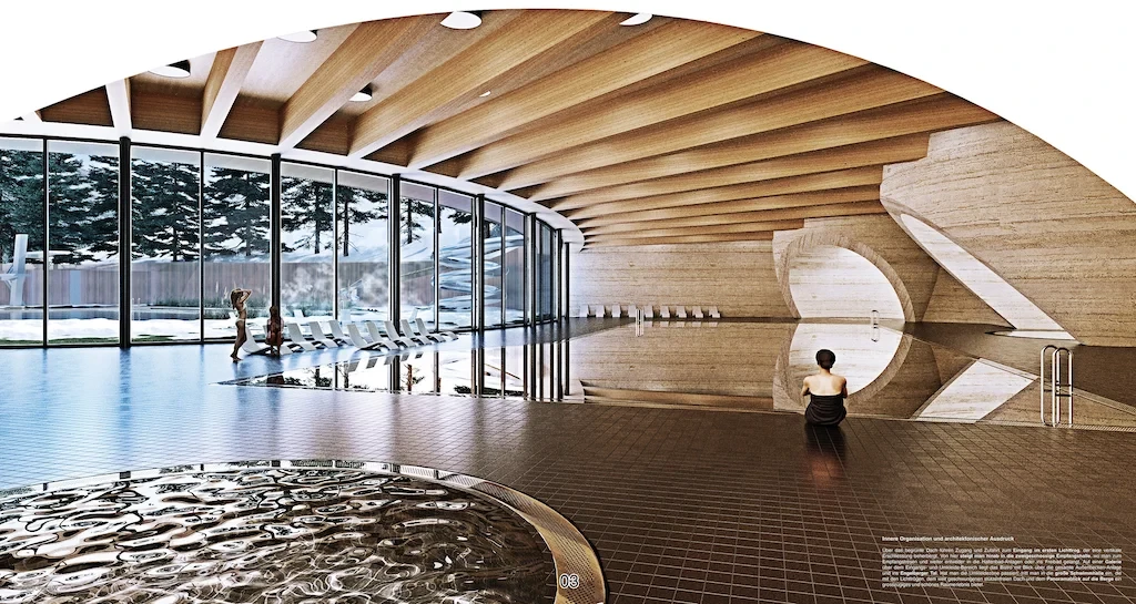 Almost 100 years later, the requirements for the new pools are much more complex than they should have been then, but the qualities of the site are exactly the same. The Genius Loci, the spirit of the place defined by nature, is still present in all its splendour. For this reason, we think that the challenge should not be to place a building there to accommodate the requirements, but to build an active landscape where all the requested activities can take place both indoors and outdoors.